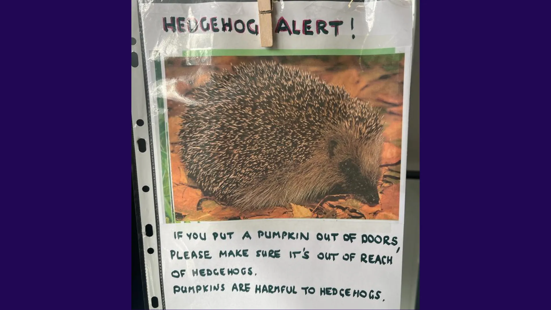 Pumpkin carving and Halloween celebrations can be great fun but it is important to remember to bring your pumpkin back indoors at the end of the evening as they can be dangerous for hedgehogs.